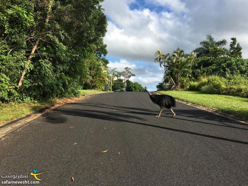 عصر توی مناطق جنگلی اطراف گشت زدیم به این امید که بتونیم پرنده كَزُوِرى (Cassowary) رو ببینیم ولی موفق نشدیم. این پرنده كه جثه اى به بزرگى شترمرغ داره فقط توى این قسمت از استرالیا و پاپوا گینه نو زندگى میكنه. روز هجدهم فقط ۵۲ کیلومتر رانندگی کردیم.