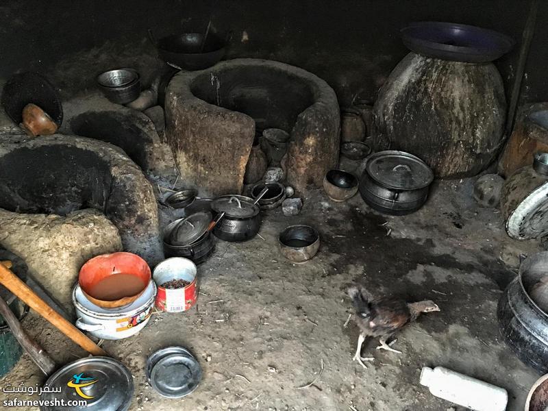 منبع ذخیره آذوقه. پایینش محل نگهداری مرغ و بوقلمون و از سقفش هم آذوقه داخلش ریخته میشه. نردبانش هم یک تنه درخت که پله پله شده
