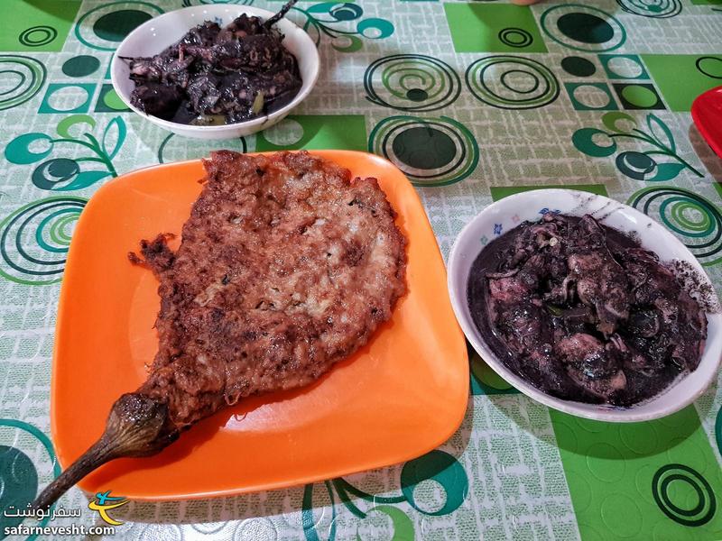 گیناتانگ پوسیت، خورشت ماهی مرکب کوچک به همراه بادمجان سوخاری
